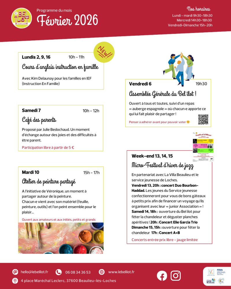 Nous avons aussi le plaisir d'accueillir le Micro-Festival d'hiver de jazz en partenariat avec la Villa Beaulieu et le service jeunesse de Loches.